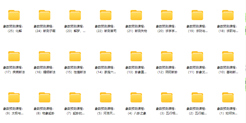 象数预测培训课程录音+课件。象数预测也就是梅花易数预测,看卦象断事,只是这套课程为录音版,可能学习上会带来一定的不便,比如不够形象,但内容量却不少。