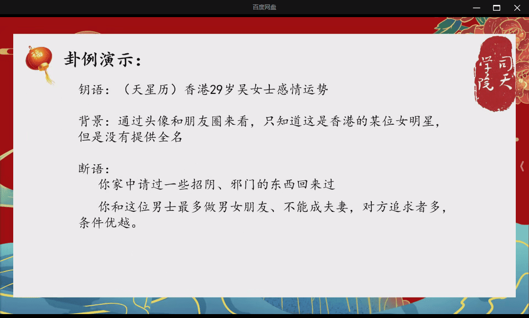 司天学院象数六爻实战训练营课程视频64集,包含八卦、地支天干认识,应期核心要领,事业占断,0基础讲解,各知识点明确,也有实战案例。