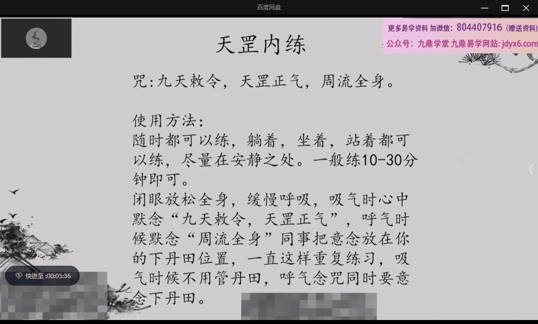 炎清-天罡正气法视频+文档pdf。这个为导引法,虽然有什么咒之类的,但那多半是一种心理暗示,个人认为和神道没太大的关联。