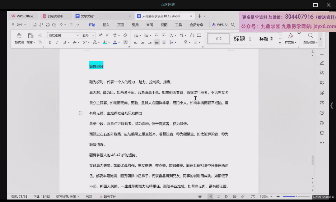 忆玥面相课视频30集,讲解面部各部位口诀和医美整形的注意事项,因为有时客户不一定是看相,更可能是整容。从先导课到具体面部特征分析,如耳朵、额头、眉毛、眼睛、鼻子、颧骨及下停部分等章节。