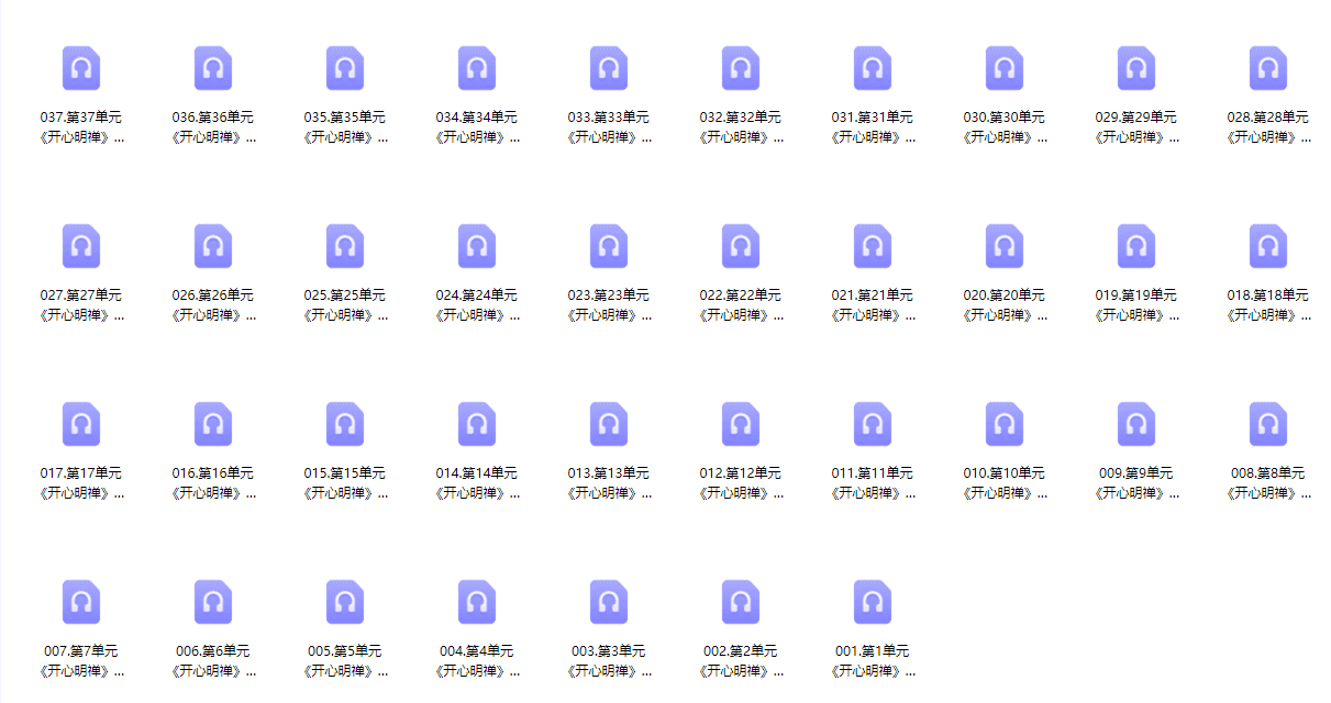 开心明禅 自在回互录音37集,每集七八分钟到十来分钟不等,适合喜欢禅修的朋友。