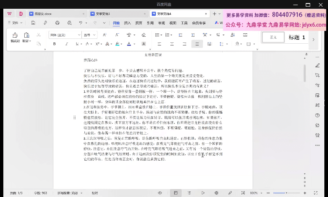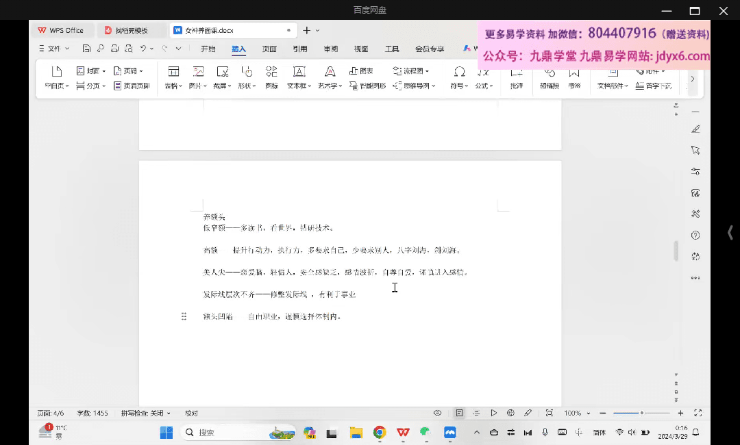Cassie酱神圣女神养面课视频+音频9集。黑白版的一个文档就开讲,讲解面部的各种调养,提升桃花和财富等。