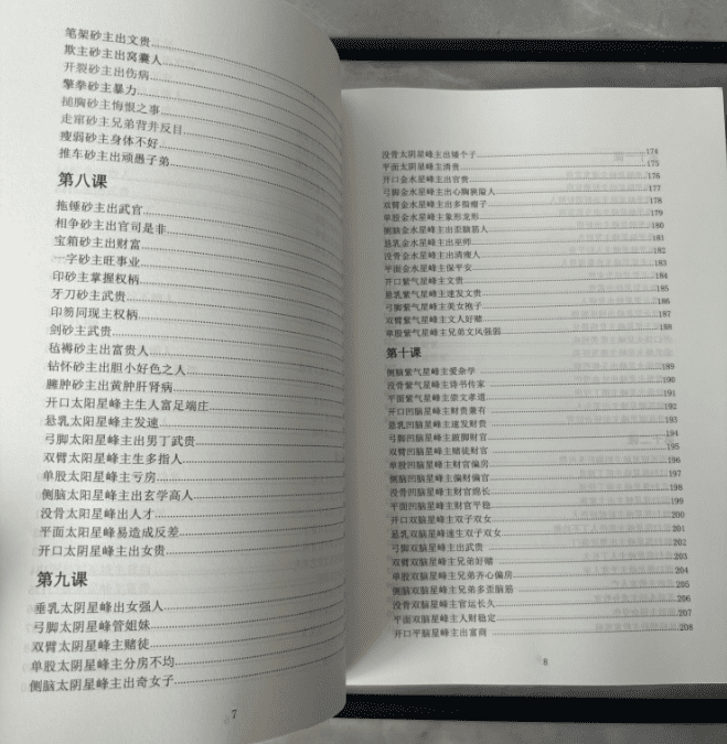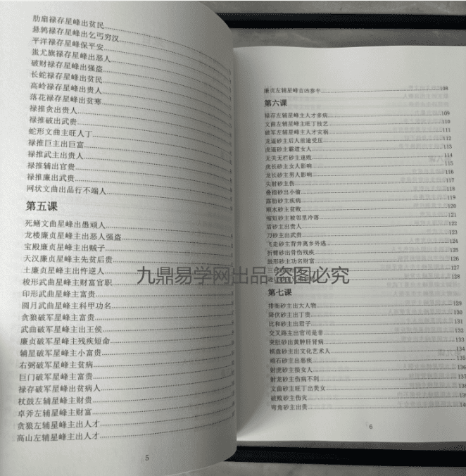 全卷整理了1000多种砂形,除了常见的峦头五星峰,杨公九星峰,廖公九星峰,六府星峰外,还包括了罕见的变体星峰,兼体星峰,贴体星峰,衬体星峰,象形星峰等等,内容涵盖面广泛,博大精深,深奥复杂,所以每一卷都配备高清视频配套讲解,方便大家吸收纳取
