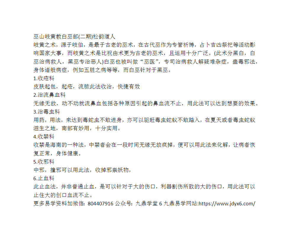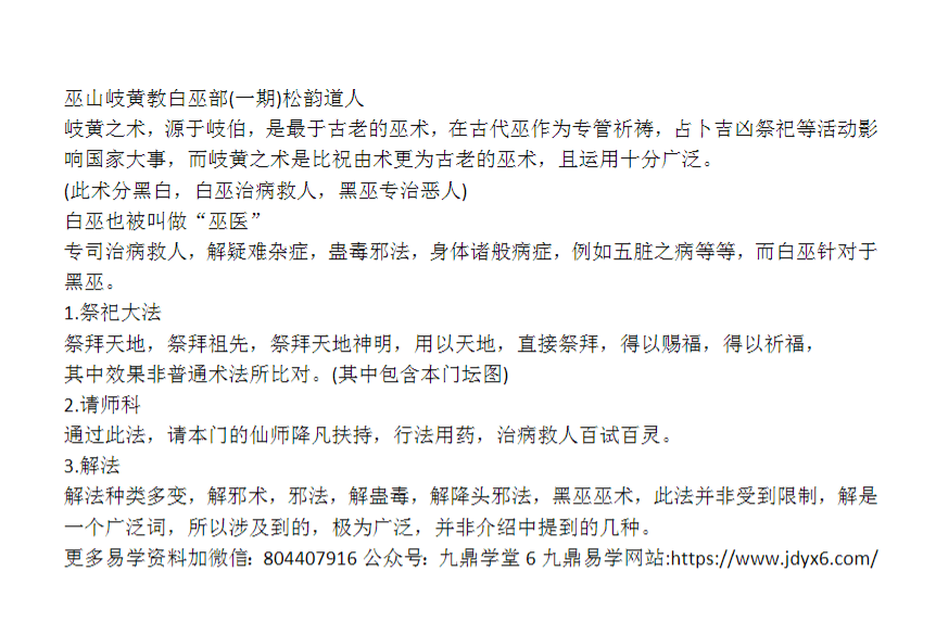 松韵道人 巫山岐黄教白巫部(一期)+二期。只有文档资料和图片等,没有录音和视频。