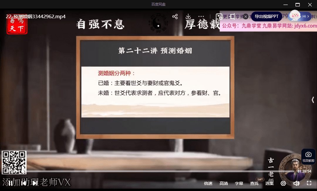 古一老师六爻视频40集,0基础讲解,涵盖测婚姻、求财、疾病、出行、工作、升学、官运、竞争、官司等多方面预测原则与技巧。详细分解六爻预测的各个步骤。