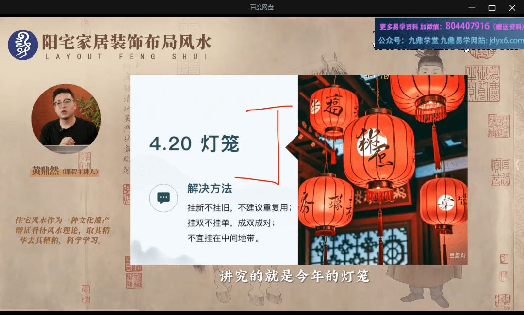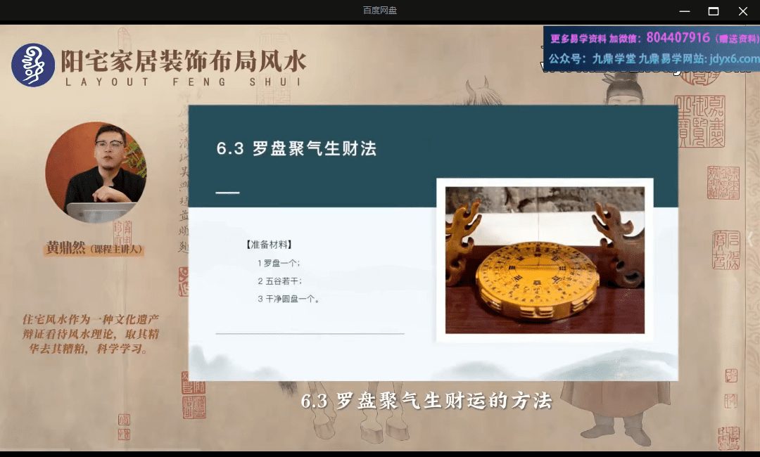 黄鼎然《阳宅家居装修布局》46集+ppt,讲解家居装修风水布局,如罗盘聚气、艾草除秽、化解各种煞气等方法