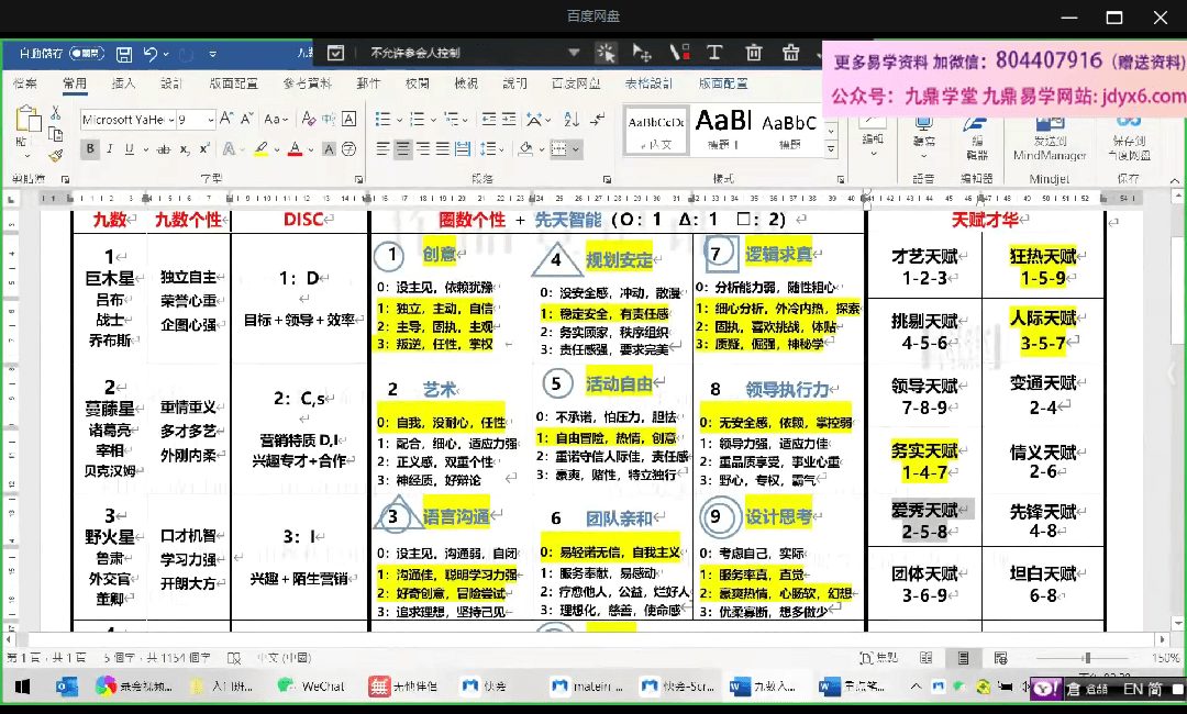 赖秋恺_九数生命能量学-入门班精华班44集视频+4集录音。涵盖天赋才华、圈数个性、先天智能等教学内容及课后一对一辅导、答疑等。这个是生命数字系列课程,不是号码断吉凶那个体系。