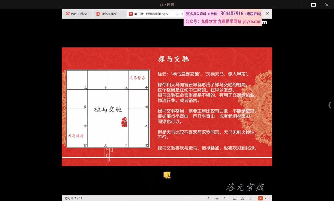 【洛元】紫微斗数财官专题课【原版】视频9集,每集10多分钟到20多分钟不等,只讲财运和事业规划。