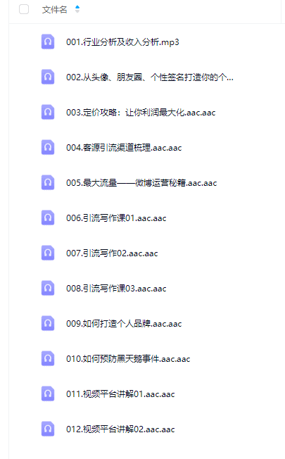 Y蕴辛引流拓客话术赚钱经验秘笈 录音12集,每集几分钟到十多分钟不等,讲解引流拓客话术赚钱经验。