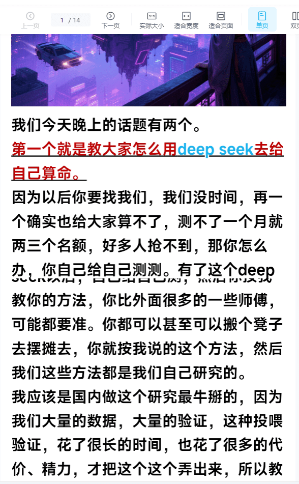 南派七叔deepseek算命讲解pdf,14大页。讲解deepseek算命的具体用法,用得好了的确可以帮助一些命理爱好者很大的忙。