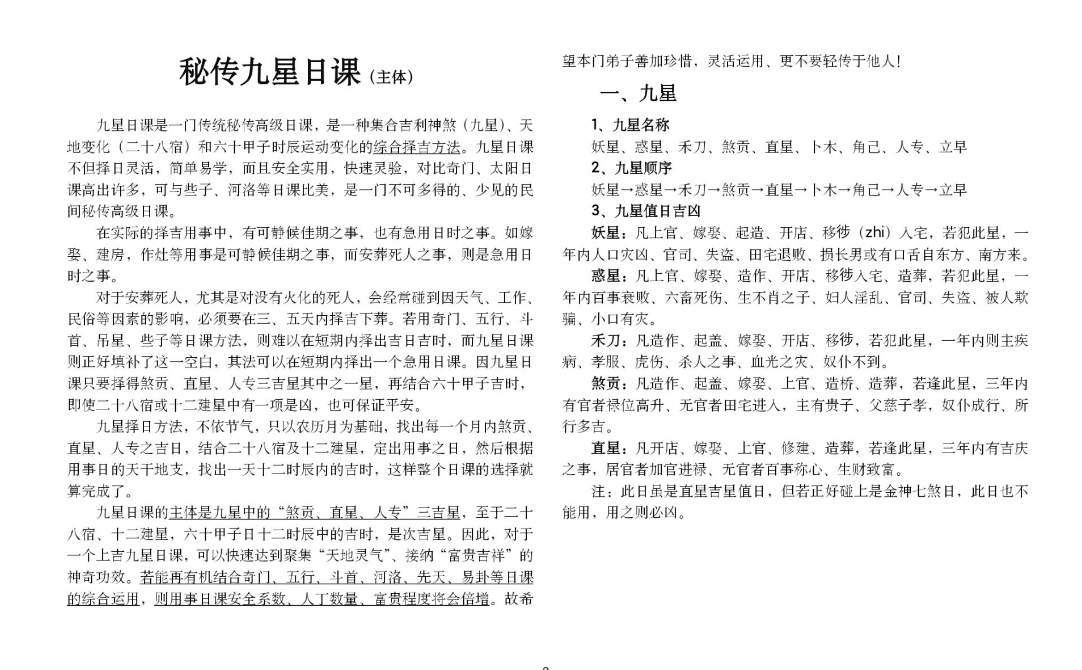 民间秘传高级日课讲义资料高清27页双面pdf,民间秘传九星日课。