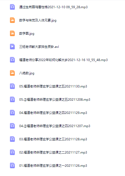 数字八字福道真人公开课音频,几个小时的数字八字公开课,均为基础类讲解。所以,免费分享了,直到链接失效。