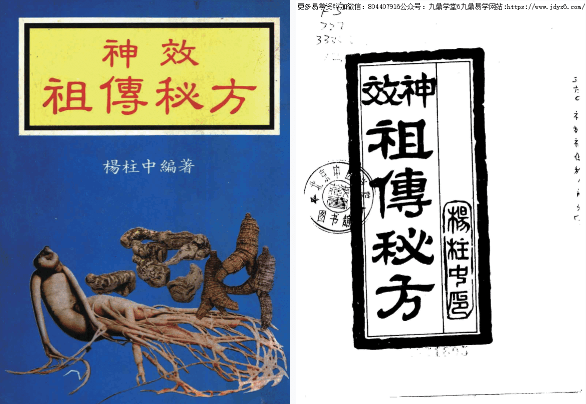 《神效祖传秘方》杨柱中.pdf 609页,均是一些日常易用方子,请在医师指导下使用,并且所造成的一切后果自负。