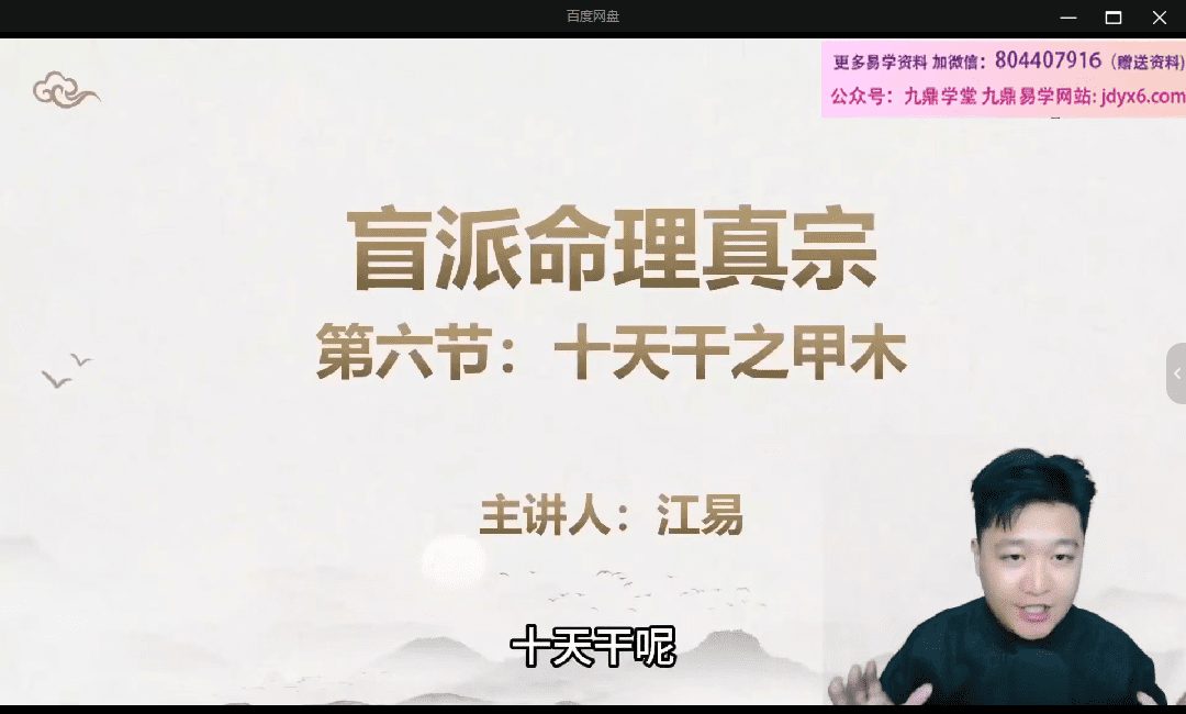 江易《盲派命理真宗》40课 51集视频,讲解命理基础与实战技巧。讲解得也还算细致,是否盲派不好说,但终归是教了真东西。