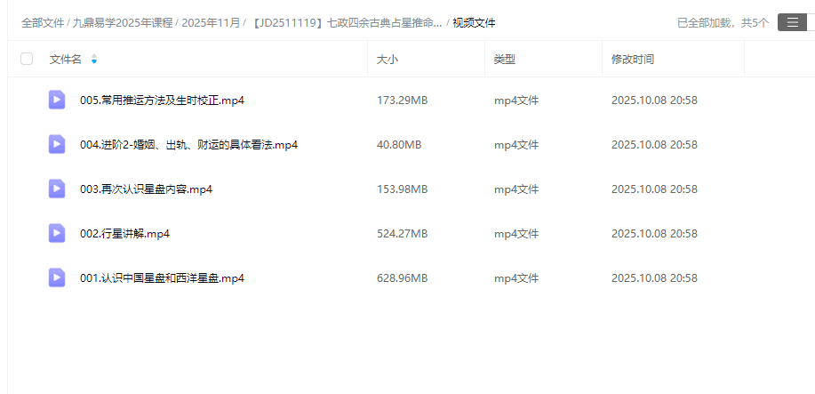 七政四余古典占星推命术 5集视频+文件