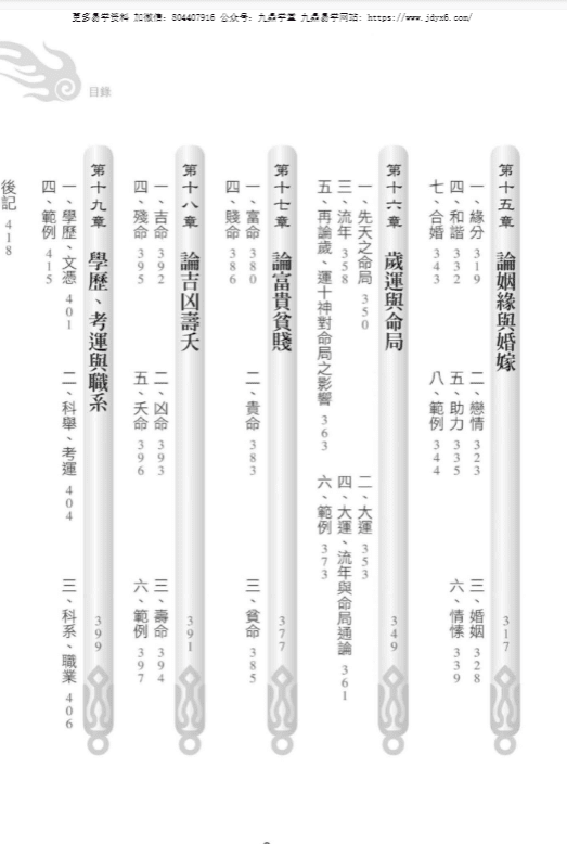 林炜能【八字入门:好学又实用的八字学习书】.pdf 423页,0基础入手,多角度去探讨八字的各种信息。