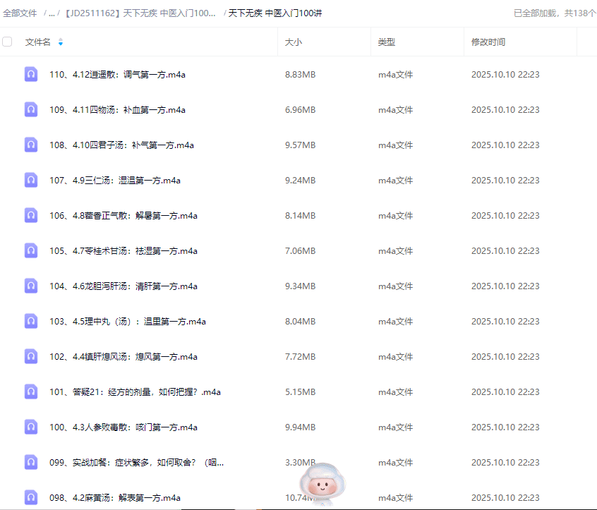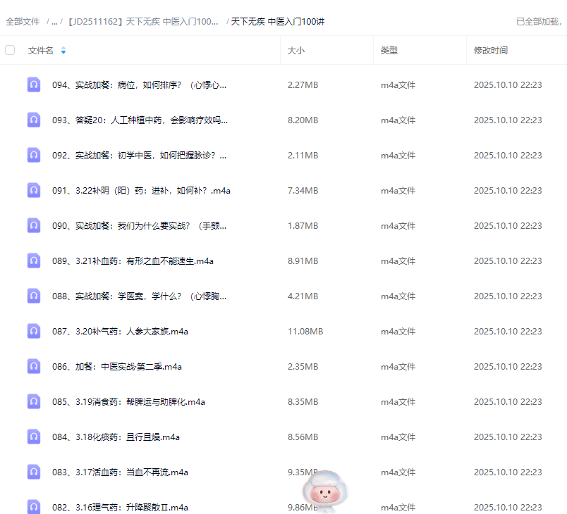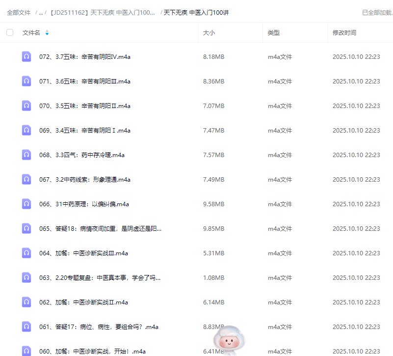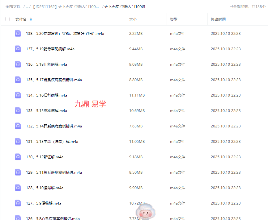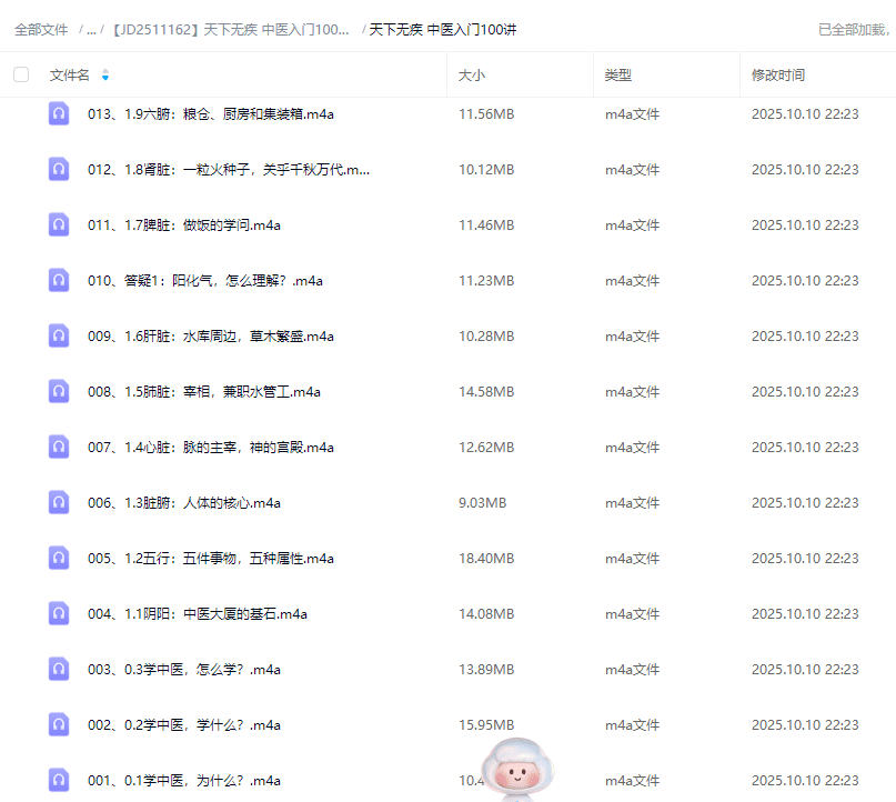 天下无疾 中医入门100讲录音,没有课件,仅有音频,每集十余分钟左右