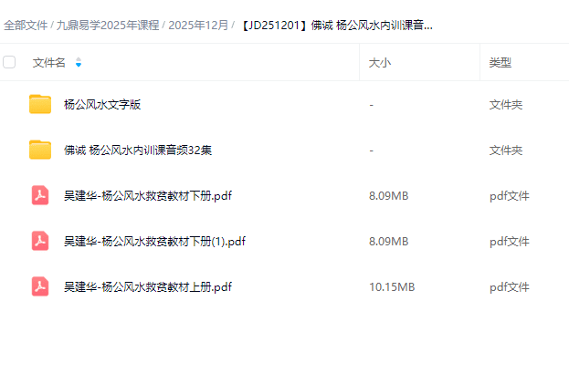 佛诚 杨公风水内训课音频32集+文档资料。录音32集,每集十余分钟,并配有文字资料,也能让你得到系统的学习。