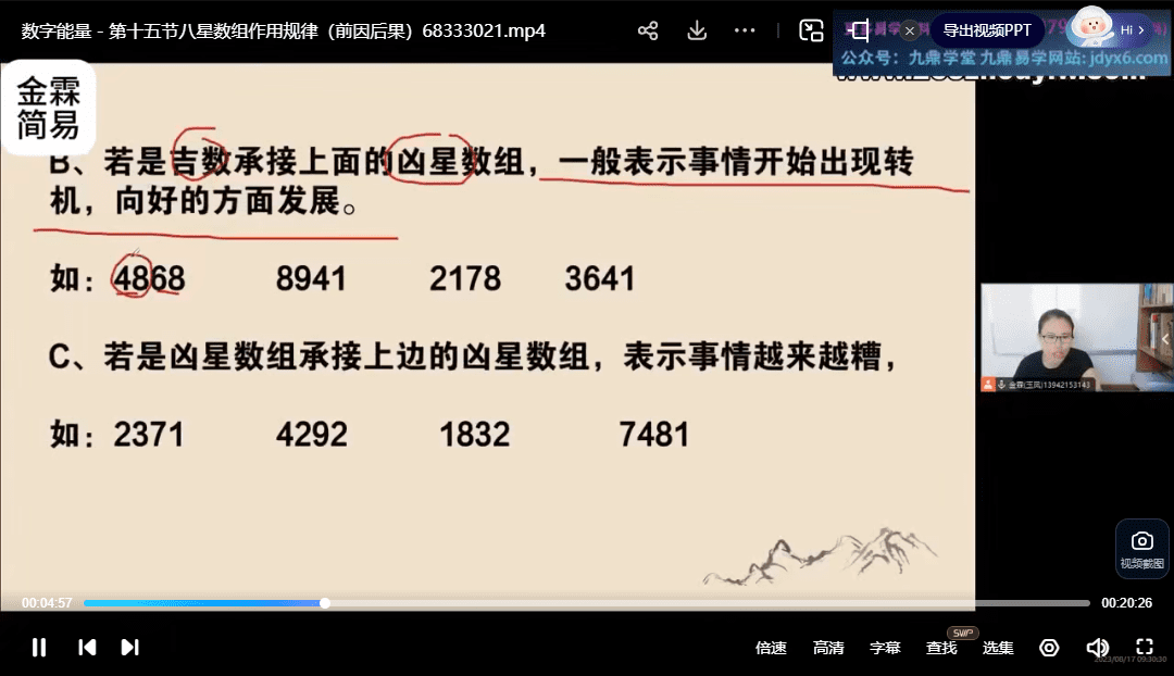 金霖老师数字能量视频36集,0基础讲解,理解八星数字原理和其组合,并能正确应用和判断吉凶。