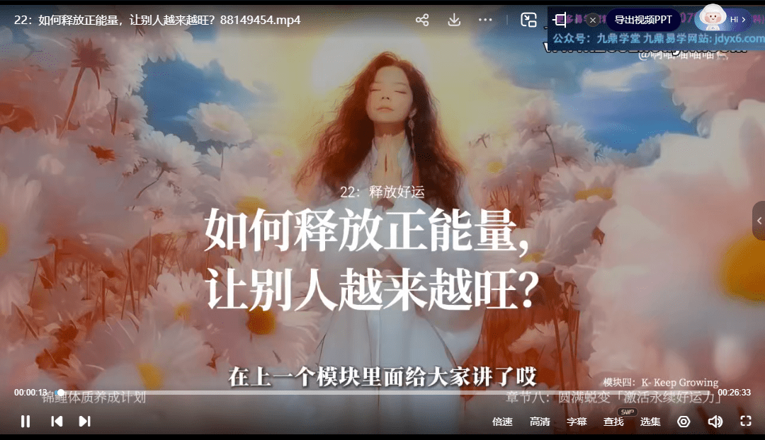 锦鲤体质养成计划视频24集,推荐大家看看,可能对改变你的运气会有不小的帮助,因为该计划符合命运的运行方式。
