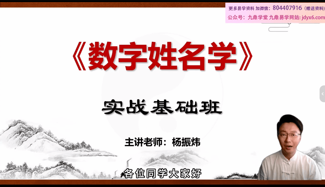 杨振炜《姓名学实战营》20集视频,讲解通过数字来解读人的姓名和预测相关信息。