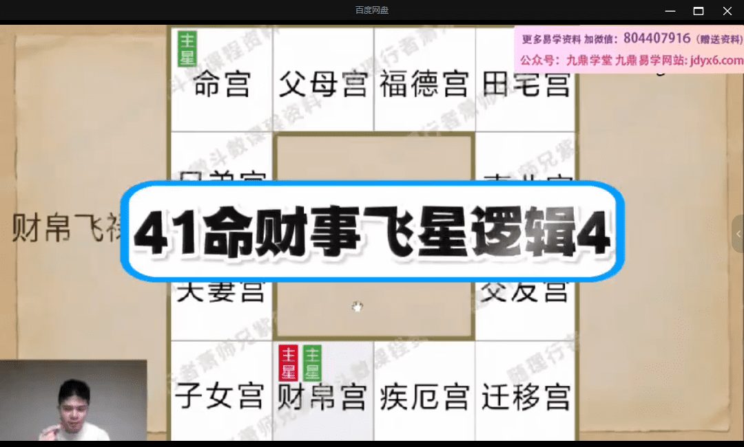 萧老师紫微斗数定盘及命财事飞星逻辑课45集视频,属于北派,涵盖定盘技巧、辅星解读及命财事案例分析。讲解各主星,辅星,煞星和飞星逻辑