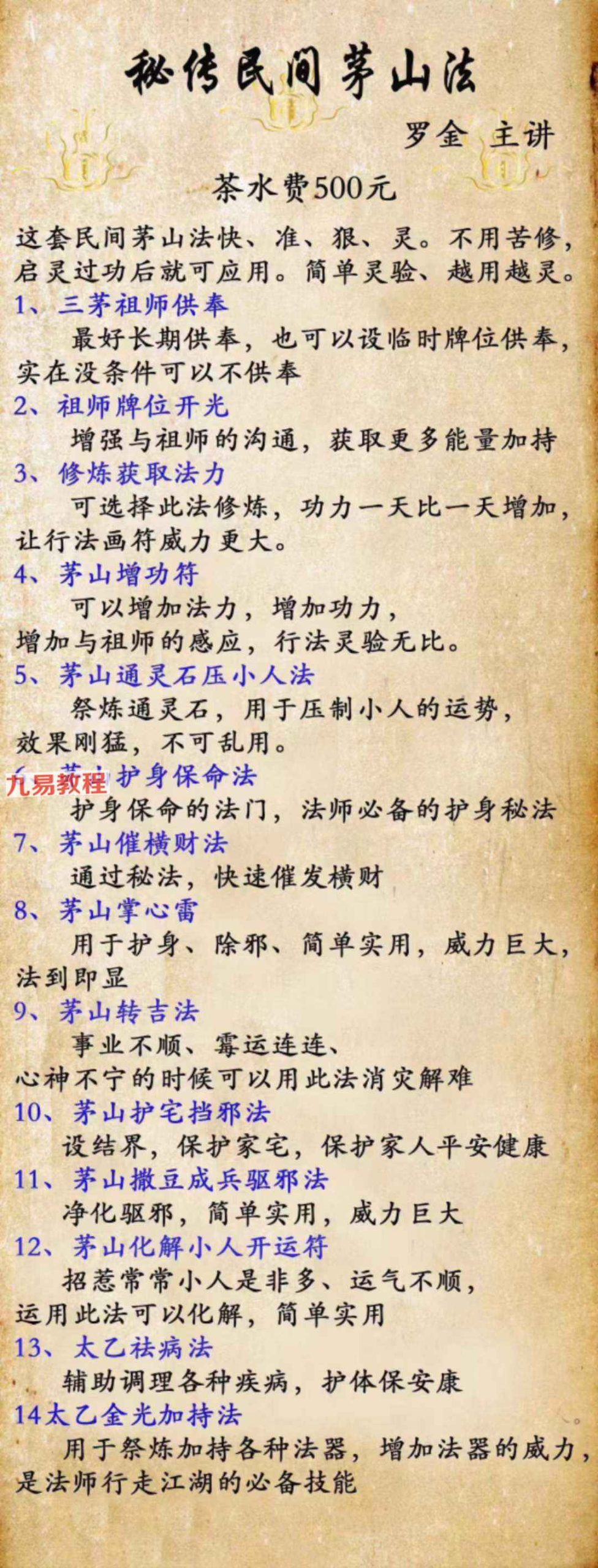 罗金秘传民间茅山法视频+课件pdf,传14种法,当然视频并不是很长,多数法还是需要靠课件进行学习的。