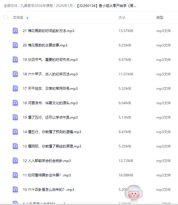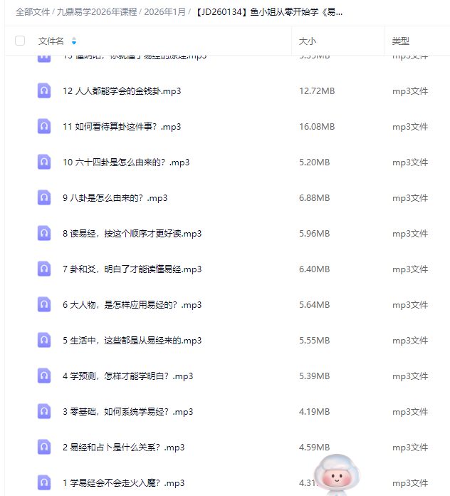 鱼小姐从零开始学《易经》36集录音,讲解知识点颇多,但均为入门级的知识,包含八字,梅花易数和奇门遁甲。