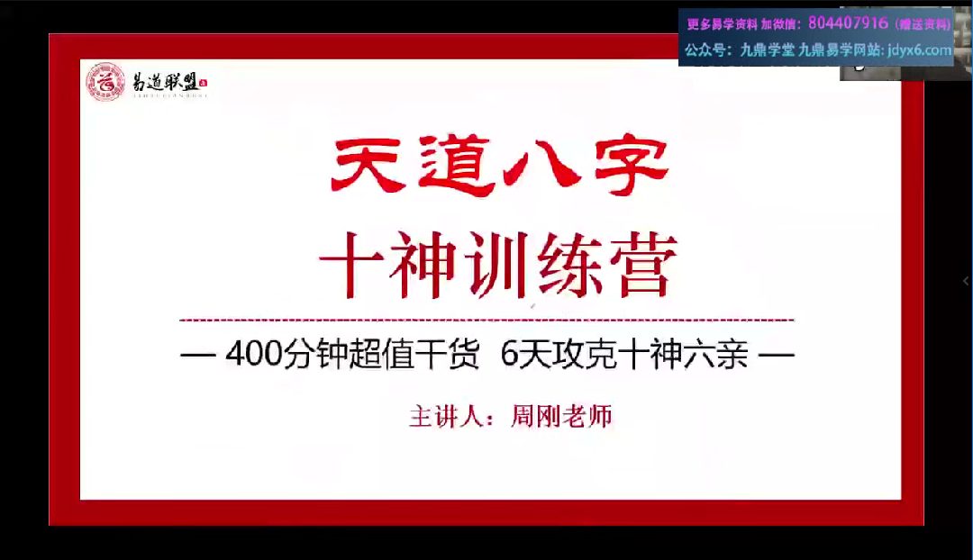 周刚《天道八字》十神训练营视频6集,大于6个小时讲解,解析八字十神配置和心性,并有案例讲解。