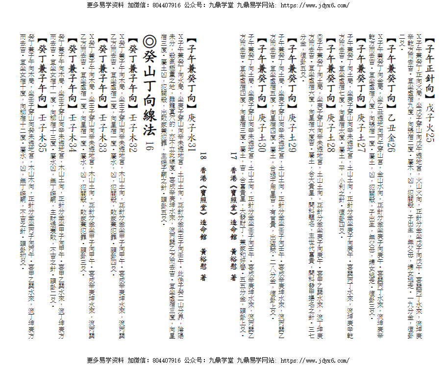 《二十四山三百七十六局立向定针》.pdf 宝照堂秘传 117单页,其实这个已经不能算单页了,属于长卷页,讲解三百多个风水局的立向定针。