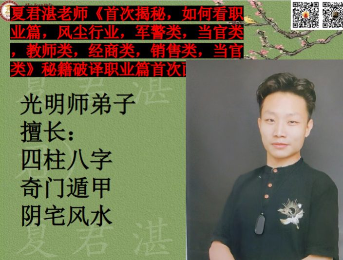 夏君湛老师《首次揭秘,如何看职业篇,风尘行业,军警类,当官类,教师类,经商类,销售类,当官类》秘籍破译职业篇首次面世.ppt 25页,讲解八字看职业的秘密。