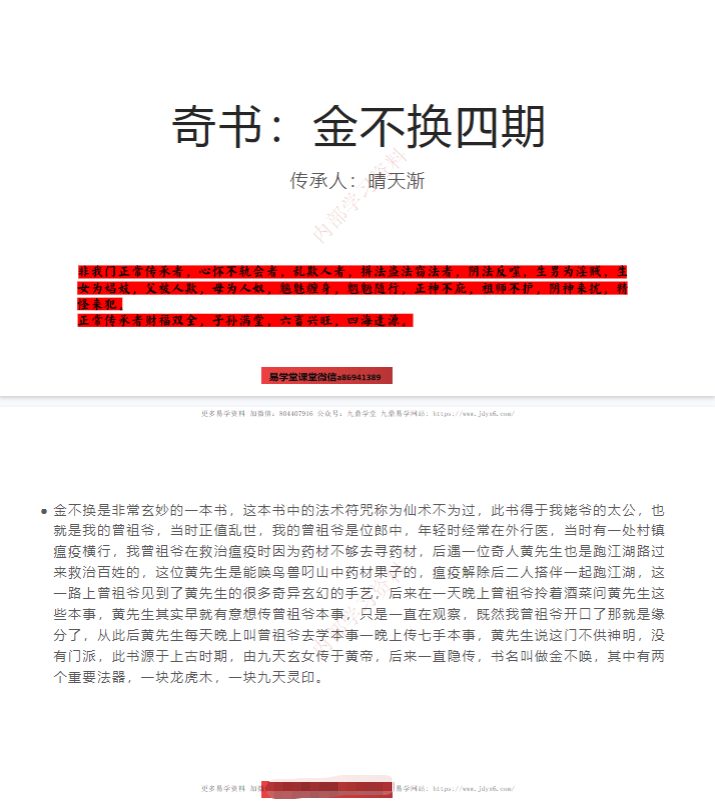 金不换奇书第四部视频3集+资料pdf,讲解多个法,延续之前的风格。