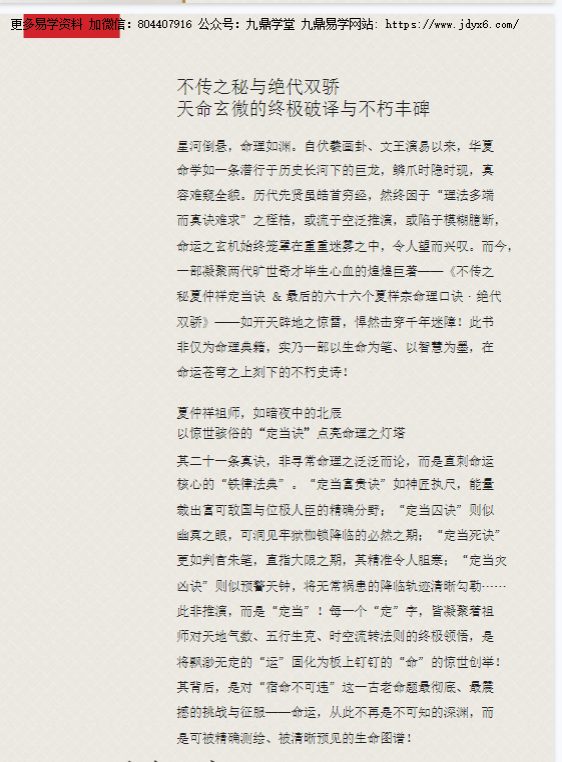 《夏仲祥当定诀 + 夏样六宗十六命理口诀》传世首发!272页整完版