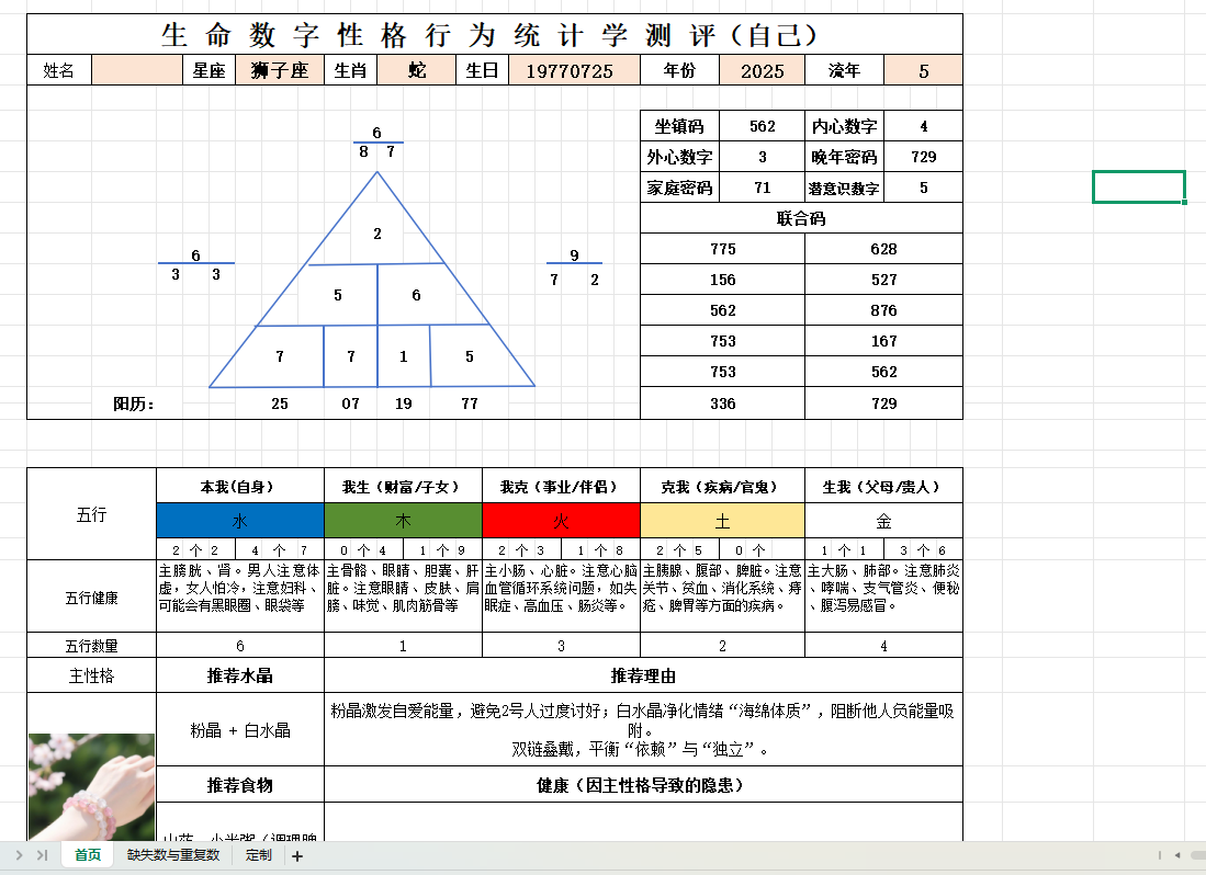 灵数排盘 生命数字自动生成系统软件(V2),无须安装,电脑上测试点开就可以用,当然肯定要有office软件,测试发现输入相关数据除了生肖可能需要手动输入,其余均会显示相关数字密码。