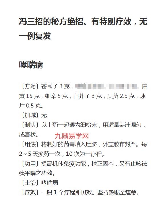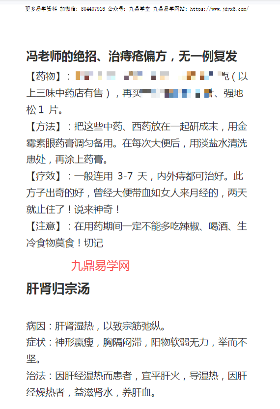 冯三招的秘方绝招、有特别疗效,无一例复发 pdf 5页,共6个不同病痛的方子,包含不会怀孕,风湿关节,咽喉炎,肝肾调养,痔疮偏方等。注意:请在中医指导下服用,自行承担任何后果。