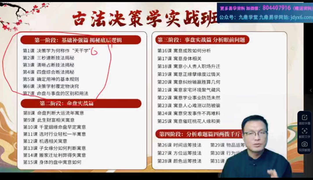 至阳决策学实战篇视频5集,分别讲解奇门遁甲实战事业,财富,姻缘,家宅等五大集。