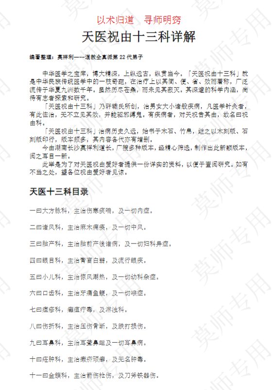 祝由十三科师门资料.pdf,44页。注意这个是以治病为主的祝由符咒术。