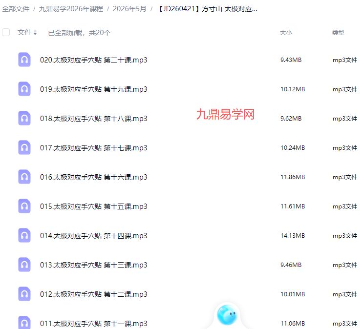 | | └──020.太极对应手穴贴 第二十课.mp3 9.43M