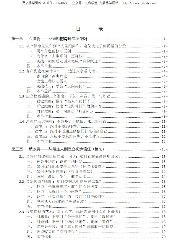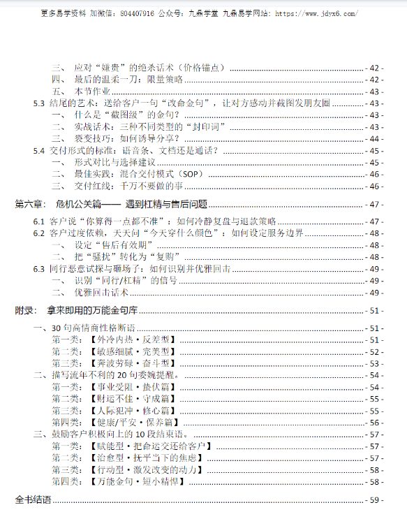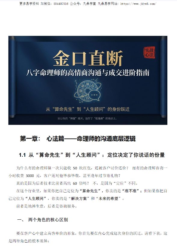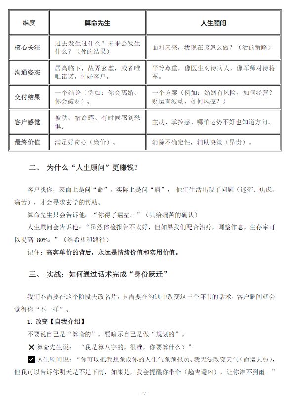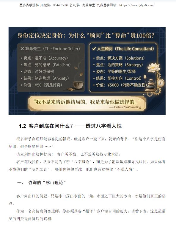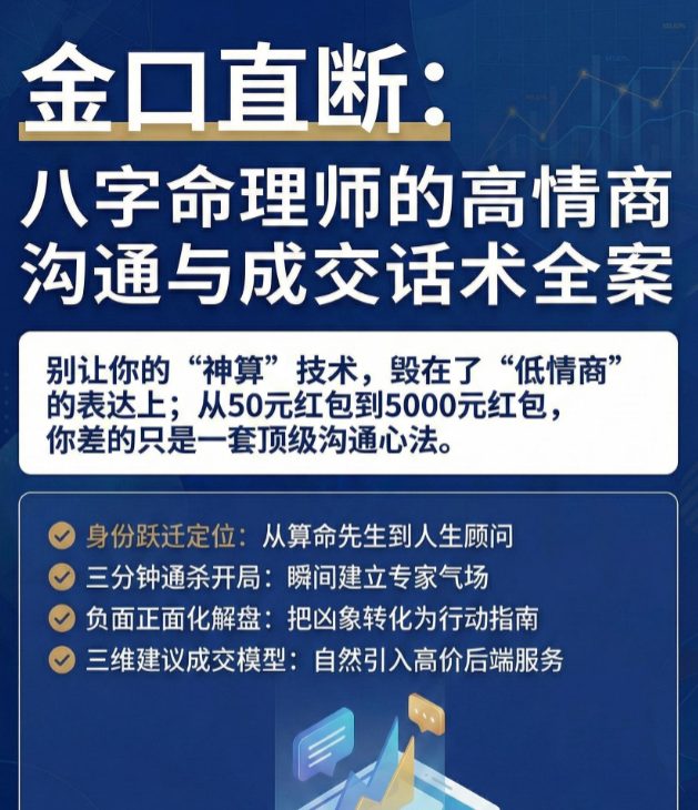 八字命理师的高情商沟通与成交话术全案【原版】pdf 64页,讲解命理咨询当中的一些高明话术和提高单价和转化率的方法。
