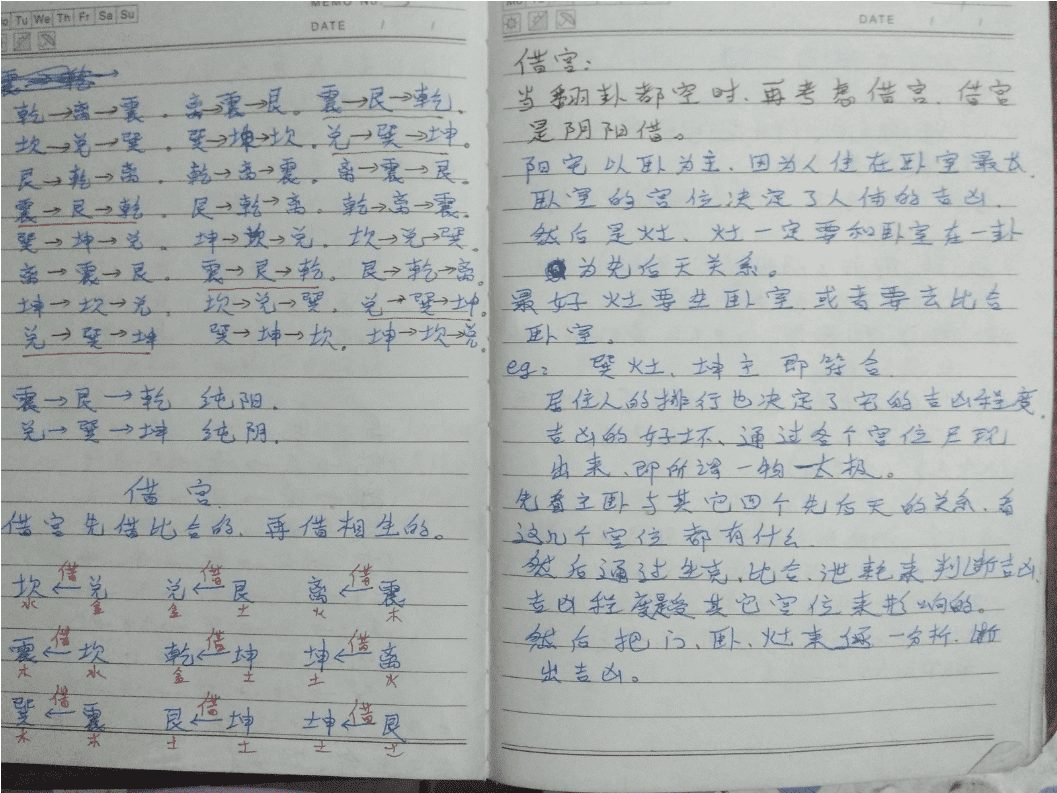 原3000的手写杨师秘传批注笔记109页:看阳宅步骤、阳宅八宫主事及化解、(八字主事,八害吉凶)