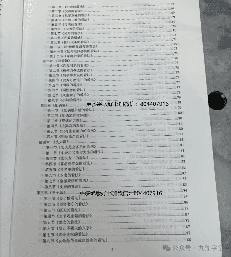 2.技法应用篇:(六亲篇,恋爱篇,配偶篇,丈夫篇,妻子篇,子女篇,婚姻篇,精彩感情命例篇,性格篇,风流篇,事业篇,职业篇,富贵篇,疾病篇,灾难篇,容貌篇,环境篇,其他篇)